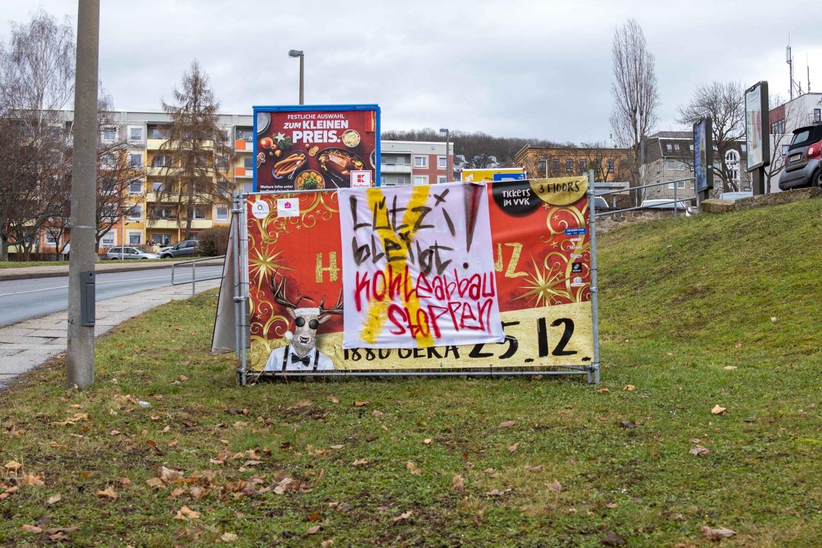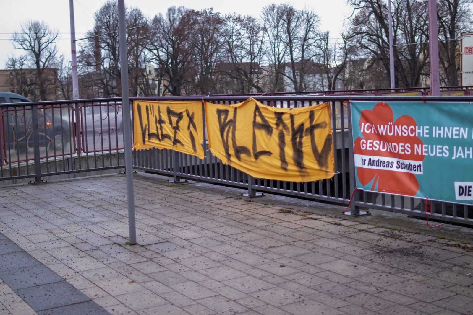 In der Nacht vom Donnerstag zum Freitag haben wir 3 Transparente, die zugespitzte Forderungen der AfD beinhalten, an den Umgehungen um Gößnitz und Altenburg aufgehängt. Die Aktion ist sowohl als Antwort auf die Wahlkampfveranstaltung der AfD in Kosma am Mittwoch, als auch als unabhängige Aktion gegen die nationalistisch-kapitalistische Partei AfD zu betrachten.